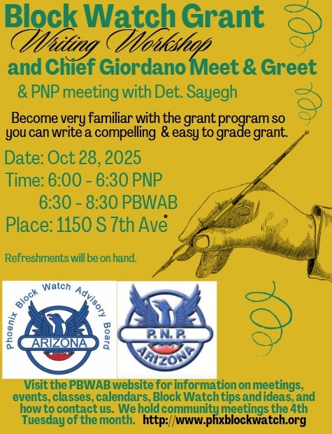 BLOCK WATCH GRANT WRITING WORKSHOP (and…Meet and greet with Chief Matt Giordano!)